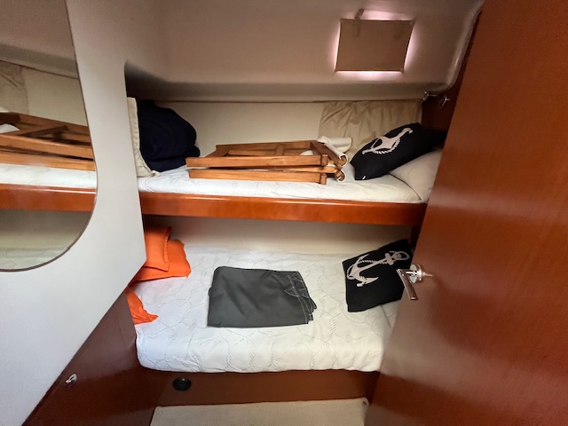 Camarote de invitados, a babor, equipado con litera doble que permite alojar cómodamente a familia o amigos durante las travesías.